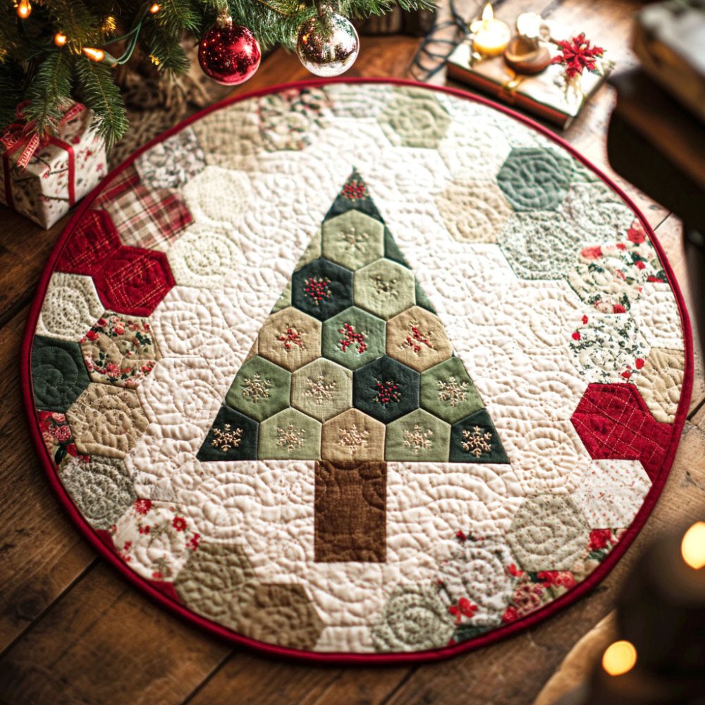Festive Hexa Pine Quilted Round Mat
