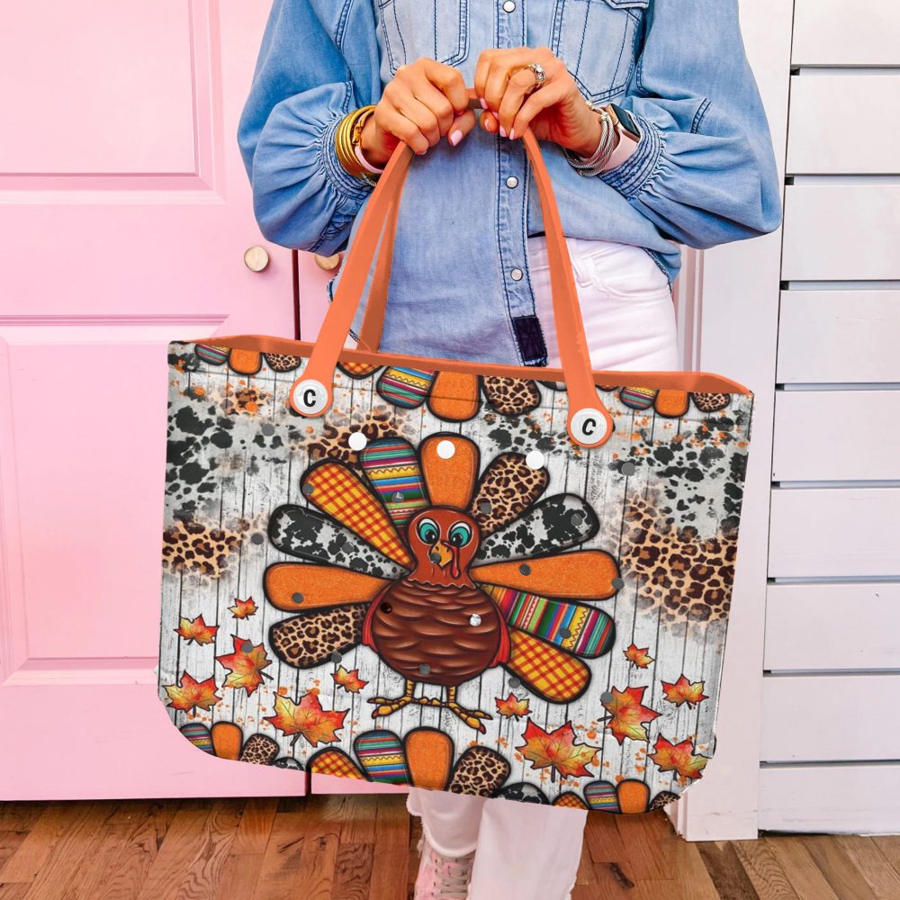 Be the first to review “Festive Turkey Tote Bag – Vibrant Autumn Design With Leaves & Animal Print, Perfect For Thanksgiving Shopping”