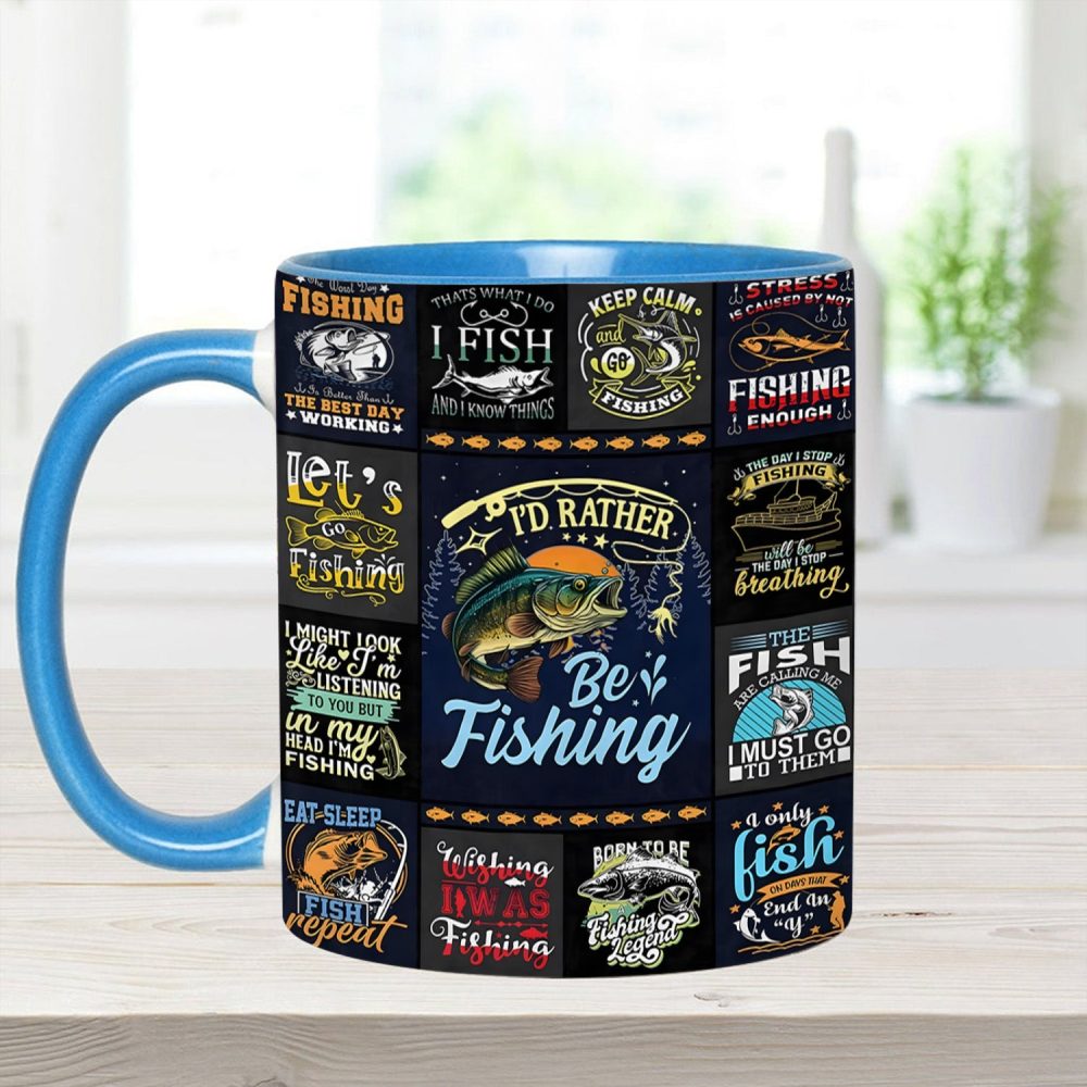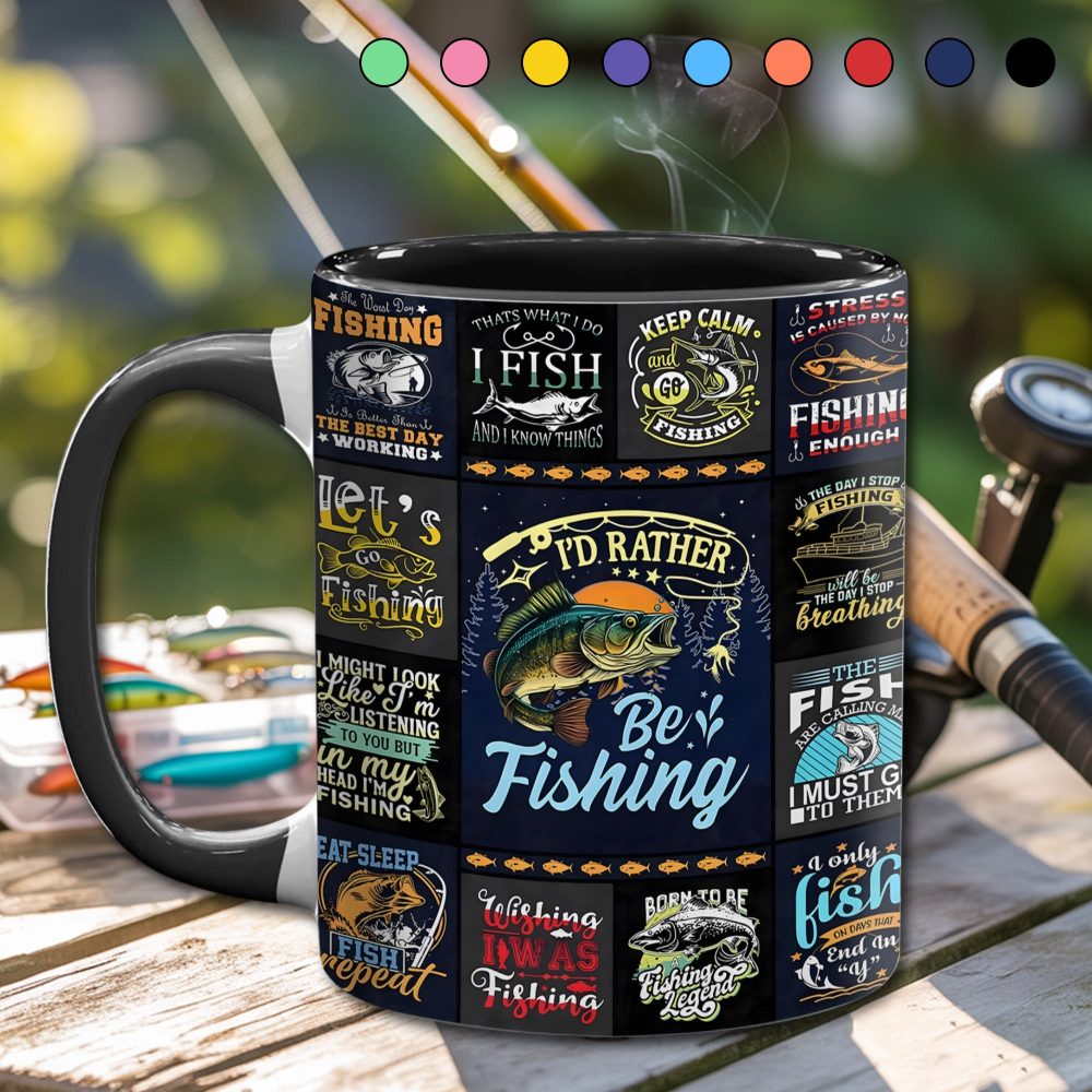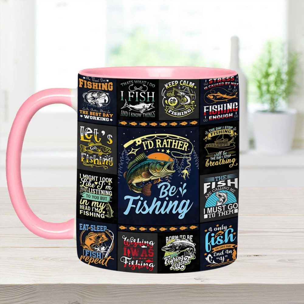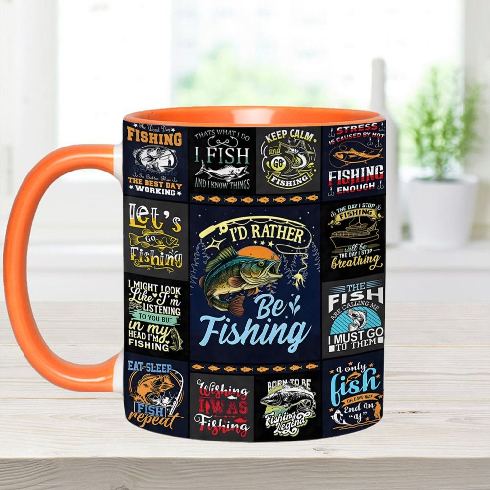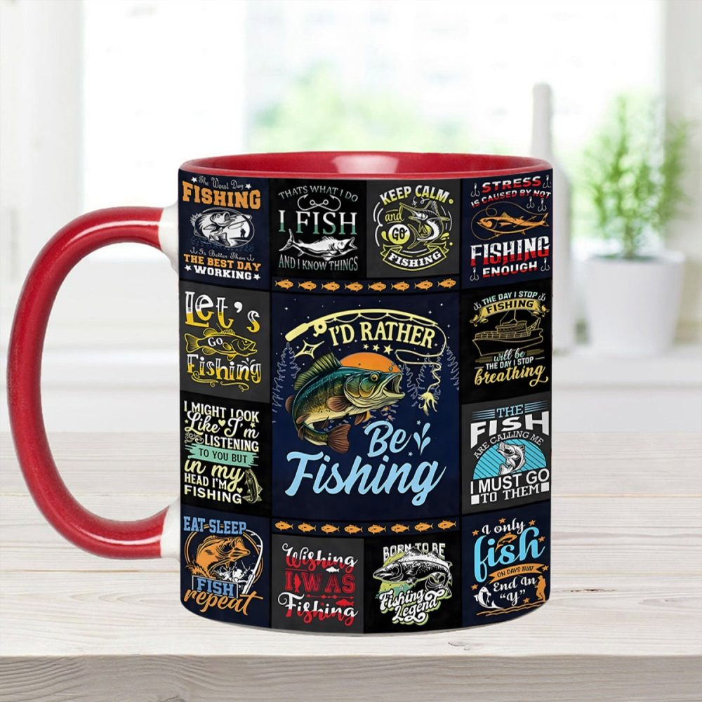 - High quality ceramic mug with two-tone rim, interior, & handle