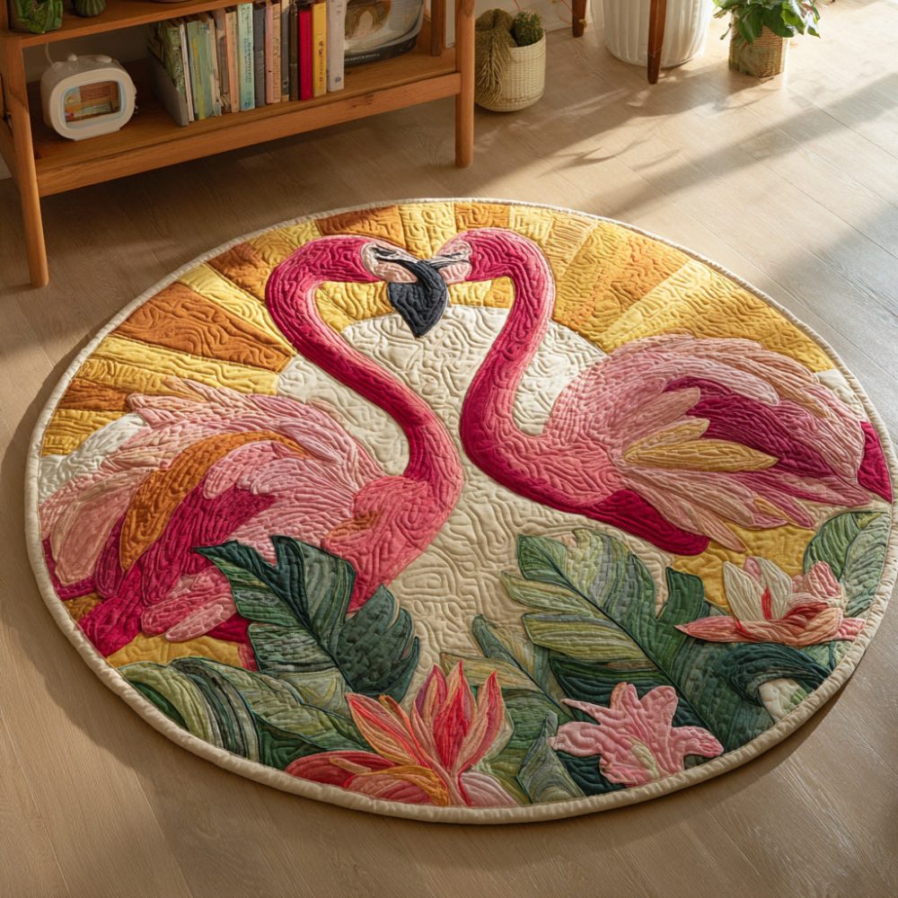 Flamingo Heart Bloom Quilted Round Mat