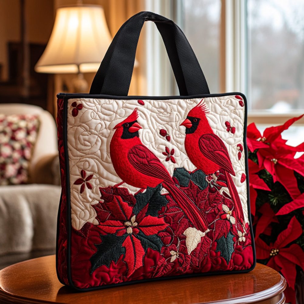Floral Cardinal Quilted Tote Bag