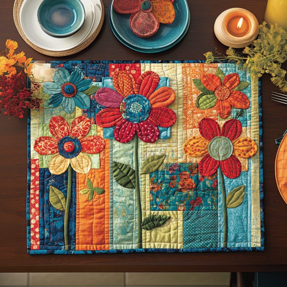 floral placemat,quilted placemat,vintage flower table mat,dining room decor,kitchen placemat,machine washable placemat,hostess gift,table charm