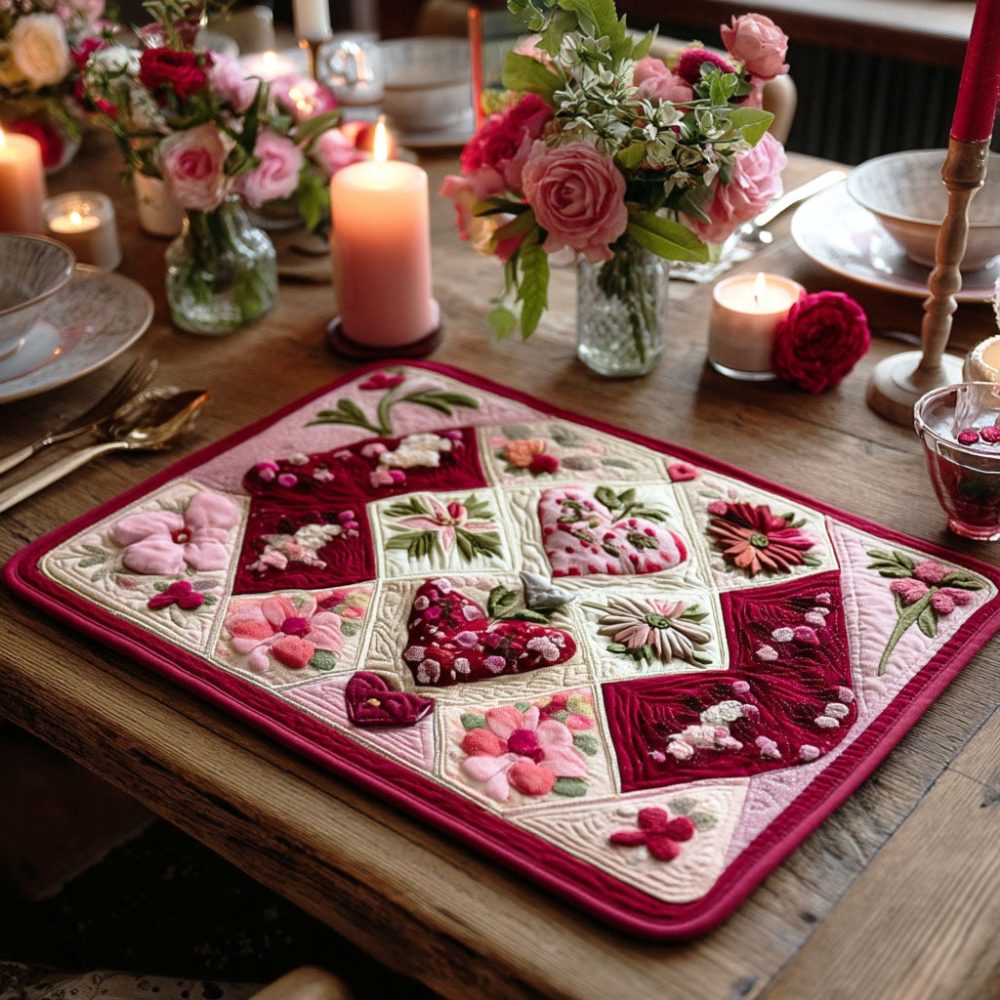quilted placemat, floral placemat, table mat, dining table decor, heat-resistant placemat, machine washable placemat, reversible placemat, botanical table decor