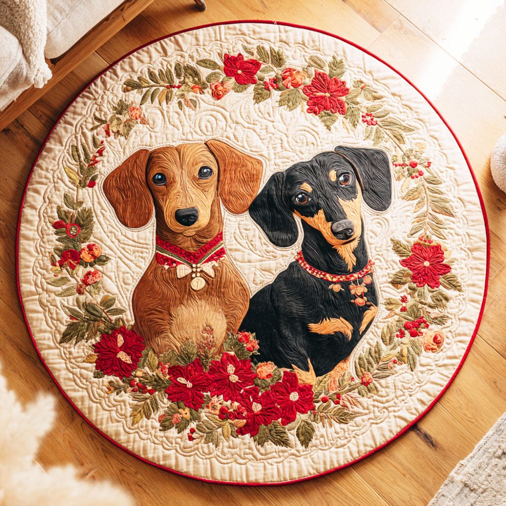 Floral Pup Quilted Round Mat