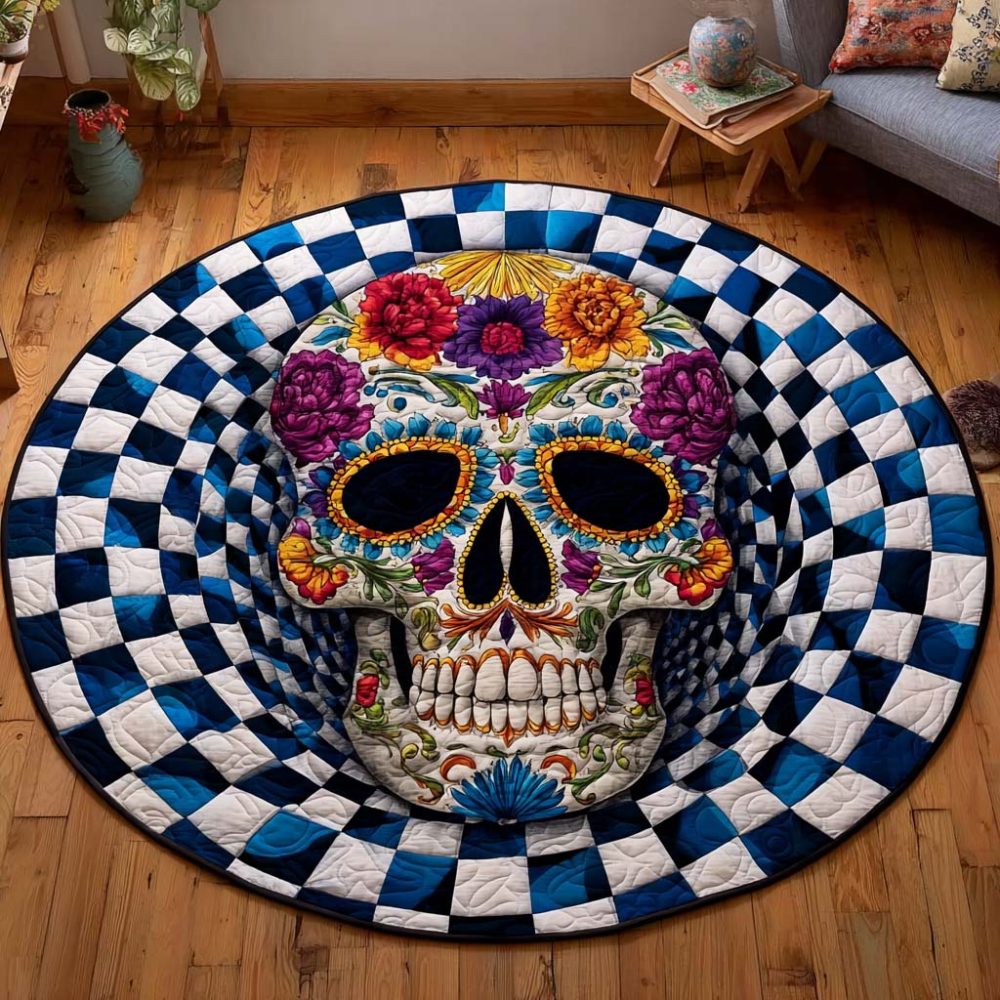 Floral Skull Quilted Round Mat
