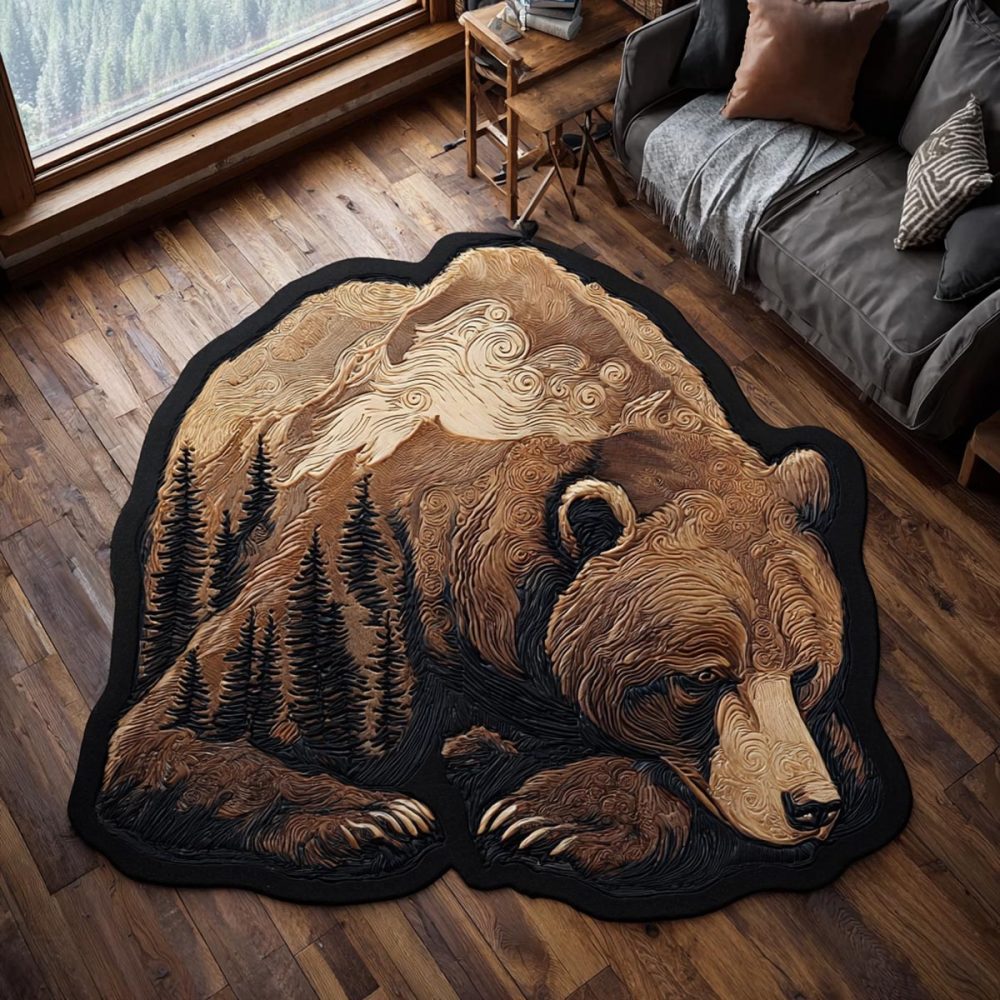 Forest Bear Custom Shape Rug — Playful Bear-Shaped Area Mat, Soft Non-Slip Accent For Kids’ Rooms, Nursery & Themed Spaces