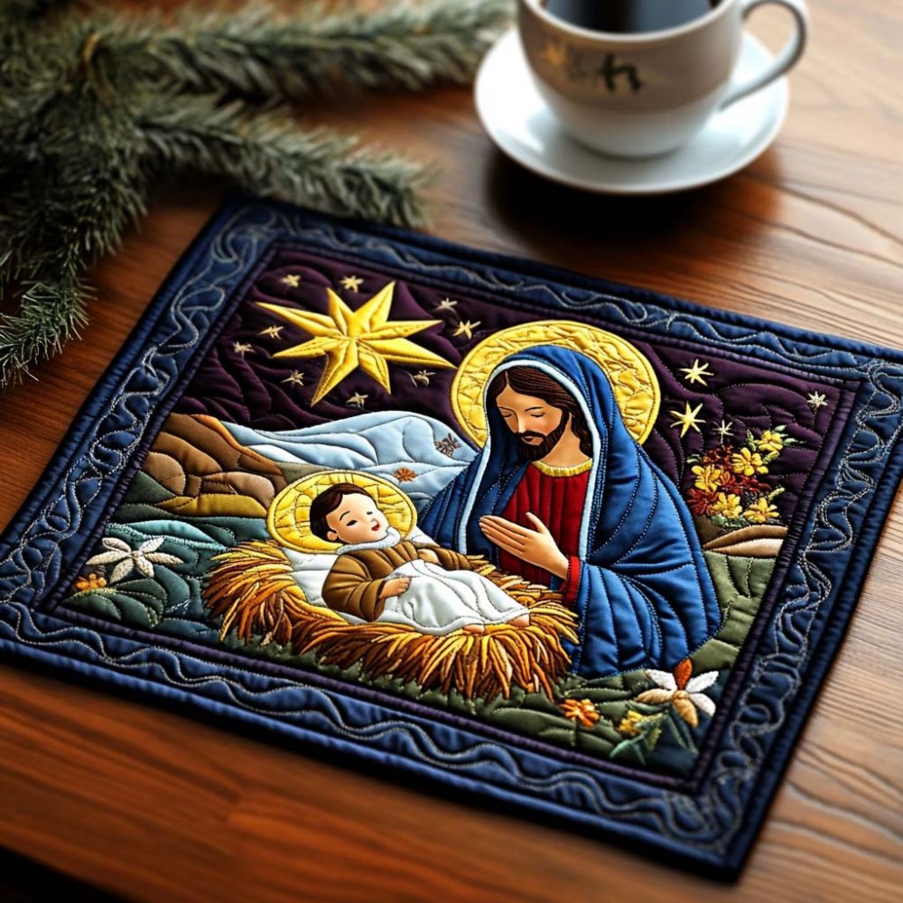 Capture woodland serenity with the Forest Carol quilted placemat featuring a hand-stitched forest scene. The cotton-blend surface with secure quilting offers reliable protection from heat and spills while adding artisanal charm to your table. Machine washable for practical upkeep — perfect for holiday dinners, cabin decor, or everyday rustic style.