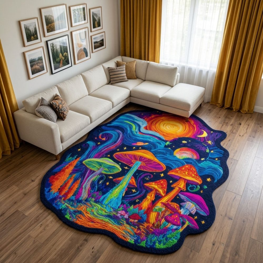 Forest Mushroom Custom-Shaped Accent Rug — Fun Shroom Design For Kids’ Rooms, Play Areas & Eclectic Spaces, Soft Low-Pile & Lightweight — Multiple Sizes , Fast Shipping & Easy Returns