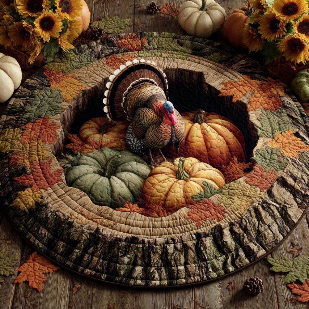 Forest Turkey Quilted Round Mat