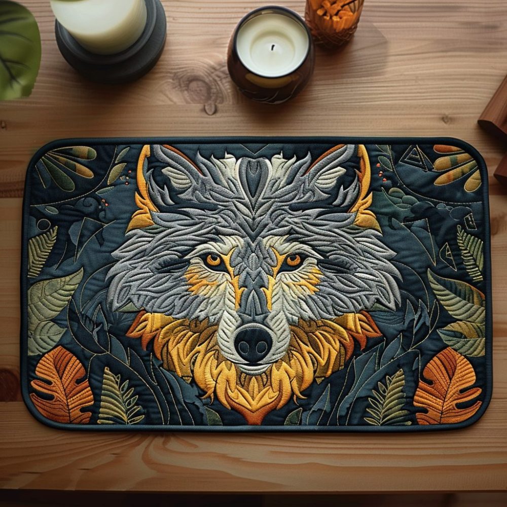 Bring woodland style to every meal with the Forest Wolf quilted placemat showcasing detailed wolf artwork in rich, natural hues. The 12×18 inch mat combines a cotton-blend face and quilted batting to shield tables from spills, heat, and scratches while adding texture to your setting. Tough stitching and fade-resistant printing make it ideal for everyday use in rustic and modern homes alike. Care is effortless — machine wash cold on gentle and tumble dry low or flat dry. Perfect for gifting to wildlife lovers.