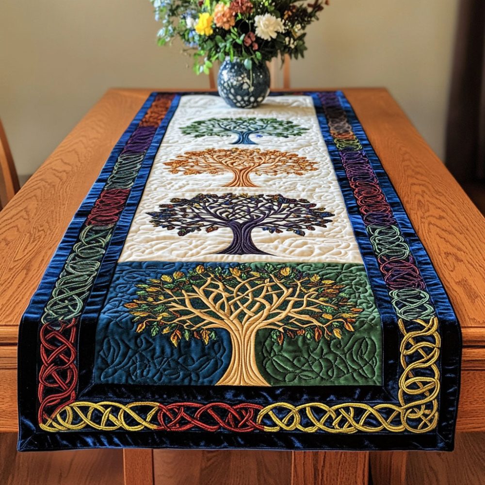 Four Seasons Tree Quilted Table Runner