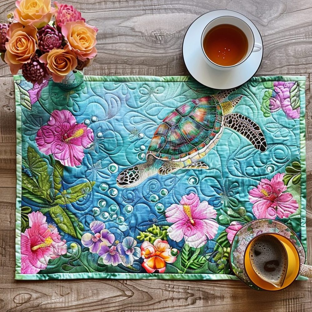 turtle placemat,coastal placemat,sea turtle table decor,beach placemat,quilted coastal mat,machine washable