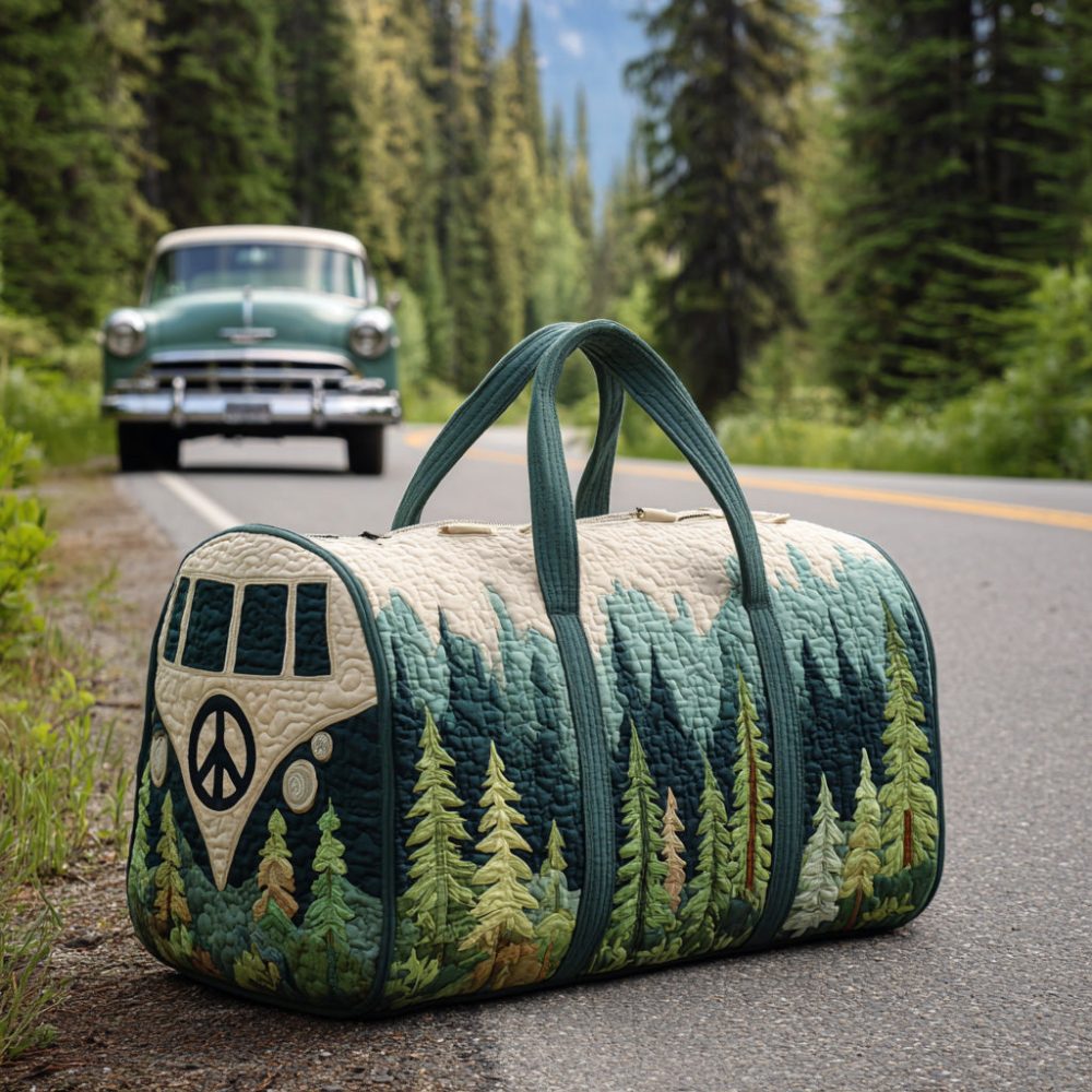 Carry a bold, motion-inspired look with the Free Wheels Quilted Duffle Bag. Featuring a retro skate-and-bike wheel graphic and quilted exterior, this bag blends vintage street style with practical function—ideal as a gym bag, weekend weekender, or carry-on. Roomy interior and sturdy handles make it perfect for commuters, skaters, and travelers who want standout design and everyday utility. Unique wheel artwork adds nostalgic, free-spirited flair to your travel gear.