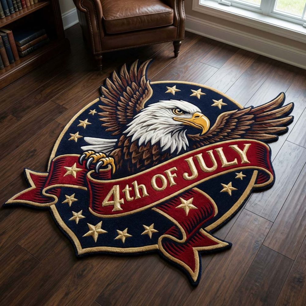 Freedom Eagle Shield Custom Rug — Hand-Cut Patriotic Eagle Floor Mat, Fade-Resistant Durable Non-Slip Custom Shape Accent For Home & Office