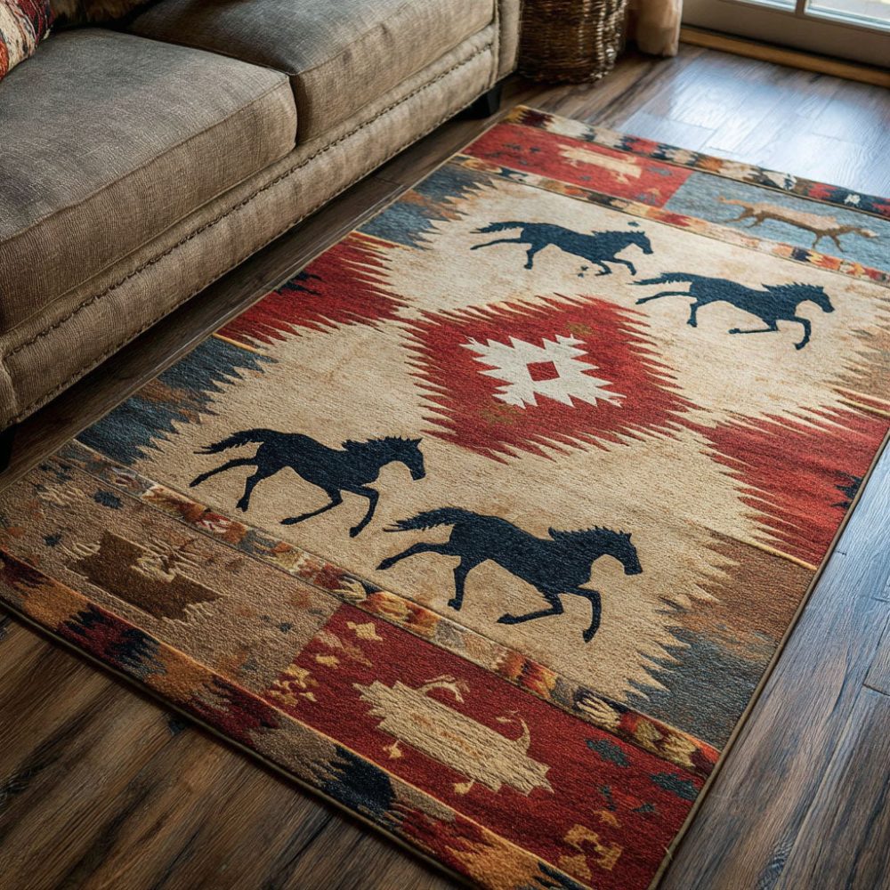 Freedom Trail Runner & Area Rug — Rustic Trail-Inspired Pattern, Durable Indoor Rug For Hallway, Living Room & Cabin