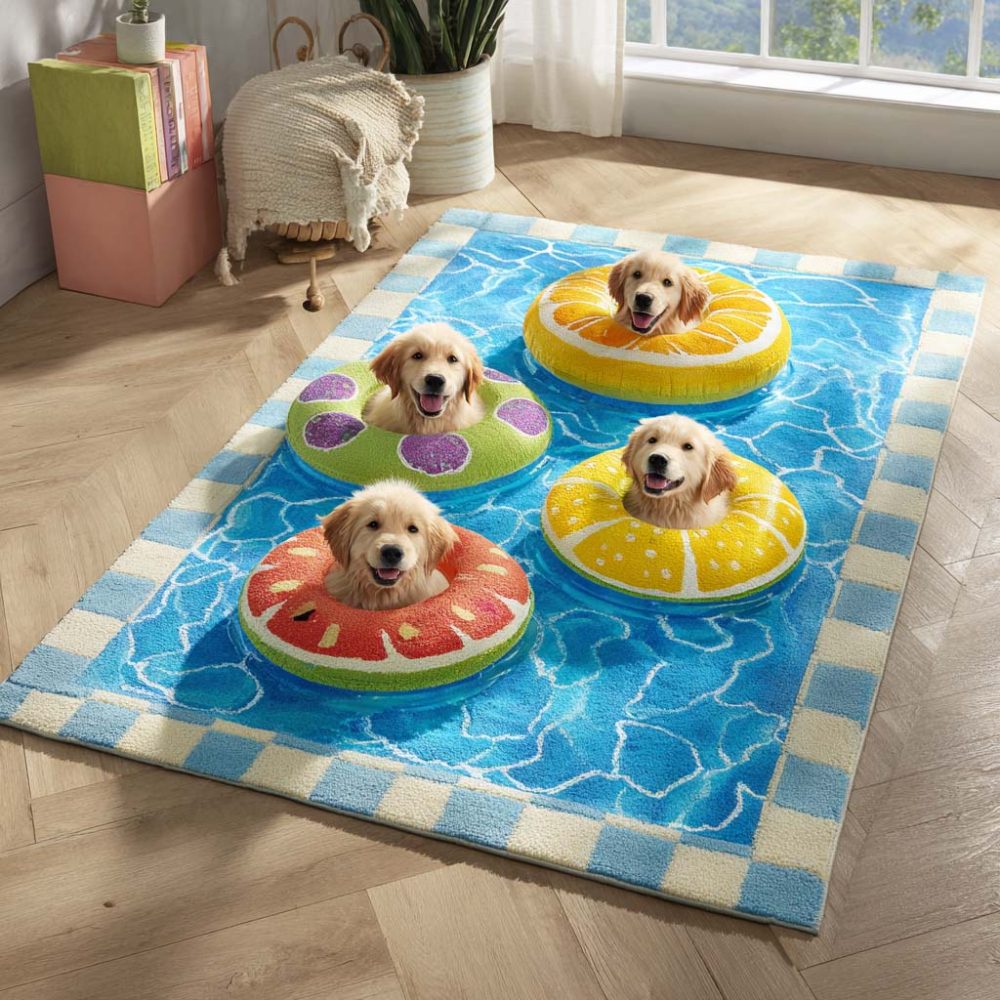 Fresh Golden Retriever Area Rug — Realistic Dog Portrait Accent Rug, Durable Indoor Floor Mat For Homes With Pets