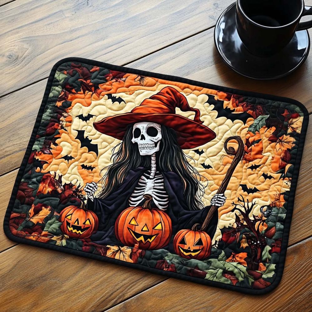 Turn your dinner into a frightful feast with the Fright Night quilted placemat. The padded design protects tables from heat and mess while bold Halloween graphics create a dramatic seasonal focal point. Durable, easy to clean, and designed for repeat use, this placemat is great for entertaining, trick-or-treat gatherings, or adding spooky flair to everyday dining.