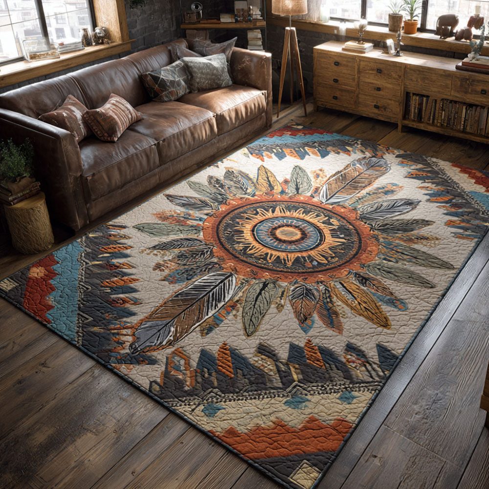 Frontier Feather Crest Area Rug — Southwestern Feather Motif, Durable Indoor Rug For Entryway, Living Room & Porch