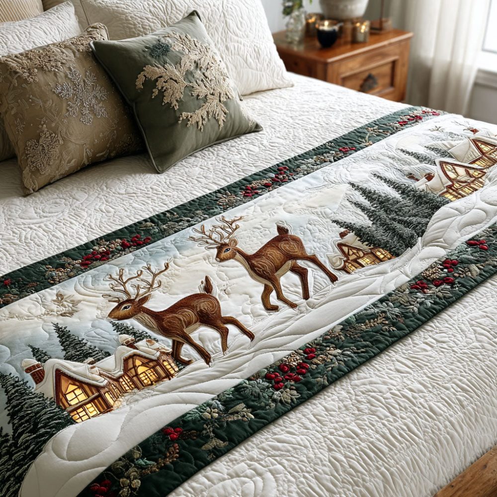Frosted Caravan Quilted Bed Runner – Nordic-Inspired Winter Bed Scarf With Geometric Accents, Warm Quilting, Lightweight & Machine-Friendly