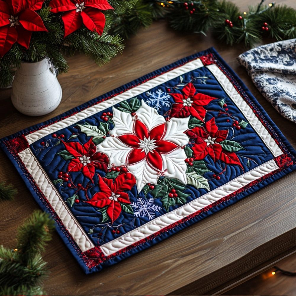 Add understated winter charm with the Frosted Elegance quilted placemat in crisp tones and refined stitching. Its padded quilting offers a soft, insulated feel that protects tabletops and complements seasonal centerpieces. An elegant choice for holiday dining, entertaining, or everyday sophistication—pairs effortlessly with neutral or festive table settings.