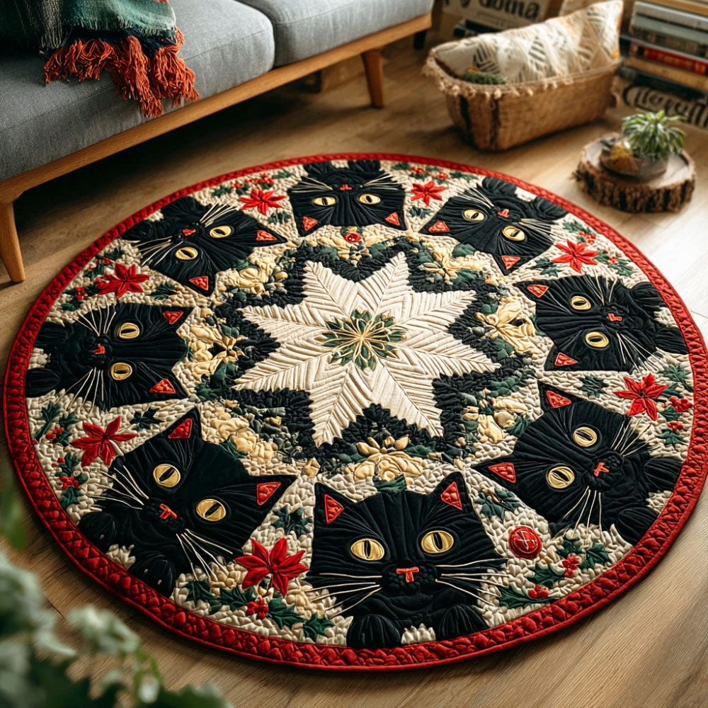 Frosty Cat Charm Quilted Round Mat