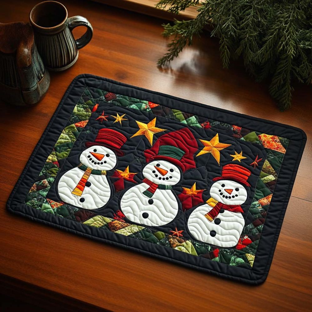 snowmen placemat, frosty placemat, quilted placemat, winter table decor, holiday placemat, insulated placemat, festive dining