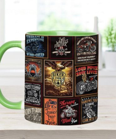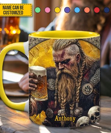 - High quality ceramic mug with two-tone rim, interior, & handle
