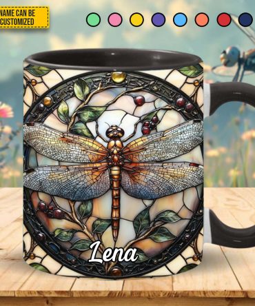 - High quality ceramic mug with two-tone rim, interior, & handle