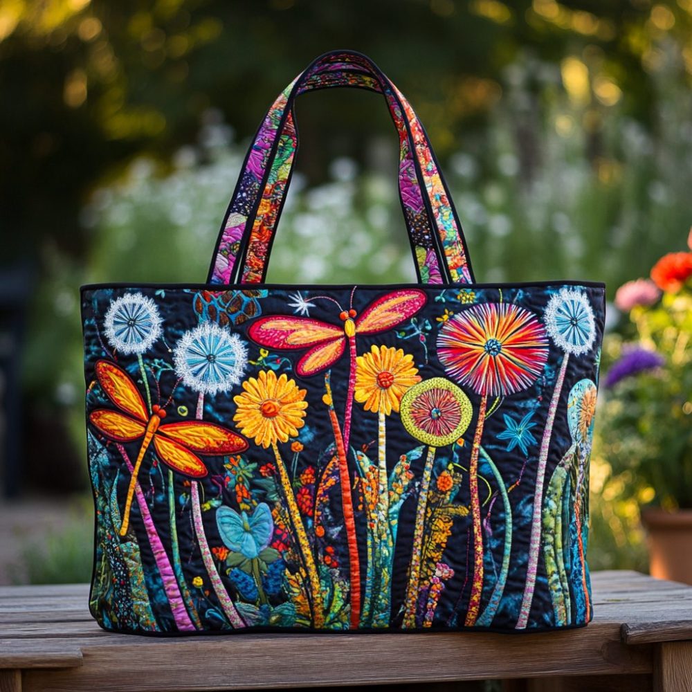 Garden Dragonfly Quilted Tote Bag