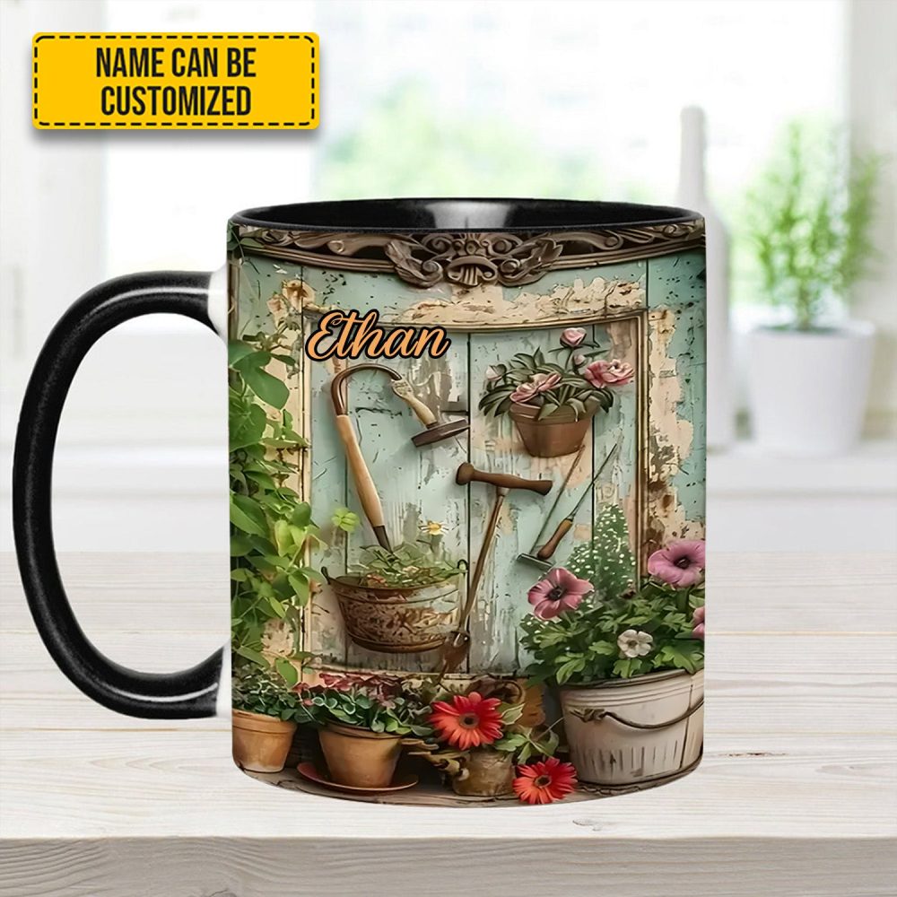 Garden Tools And Flowers – Personalized Gardening Accent Mug