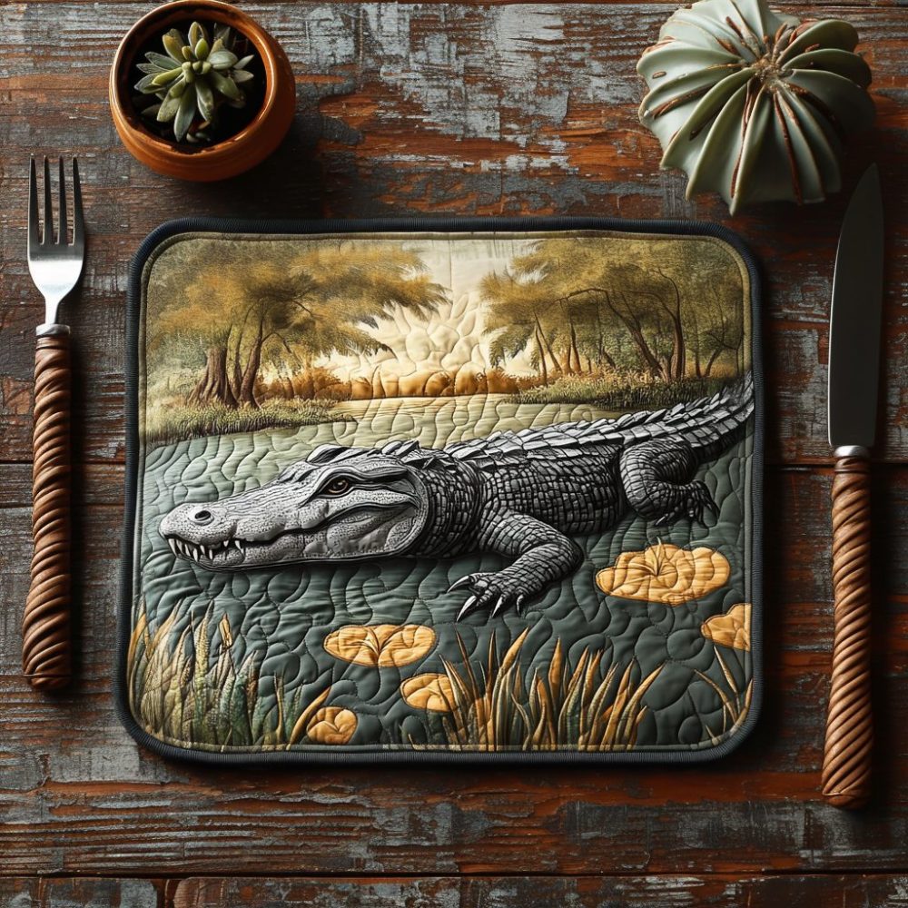 gator placemat,swamp quilted placemat,cotton table mat,cabin decor,outdoor dining placemat,novelty table decor,washable placemat
