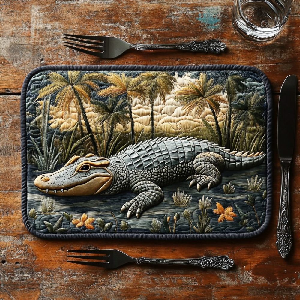 Gator Track Quilted Placemat – Alligator Print Table Protector, Rugged Cotton Dining Mat, Machine Washable Home Accent