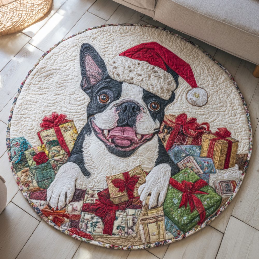 Gift Boston Terrier Quilted Round Mat