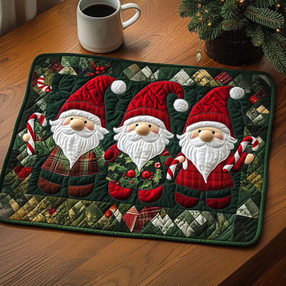 Brighten gatherings with the Gnome Cheer quilted placemat, featuring playful gnome artwork and applique details that add dimensional charm. Crafted from a durable cotton blend with reinforced quilting and a non-slip backing, it’s suitable for both indoor meals and covered outdoor entertaining. Machine washable for easy maintenance — a whimsical addition to patio lunches or garden-themed parties.