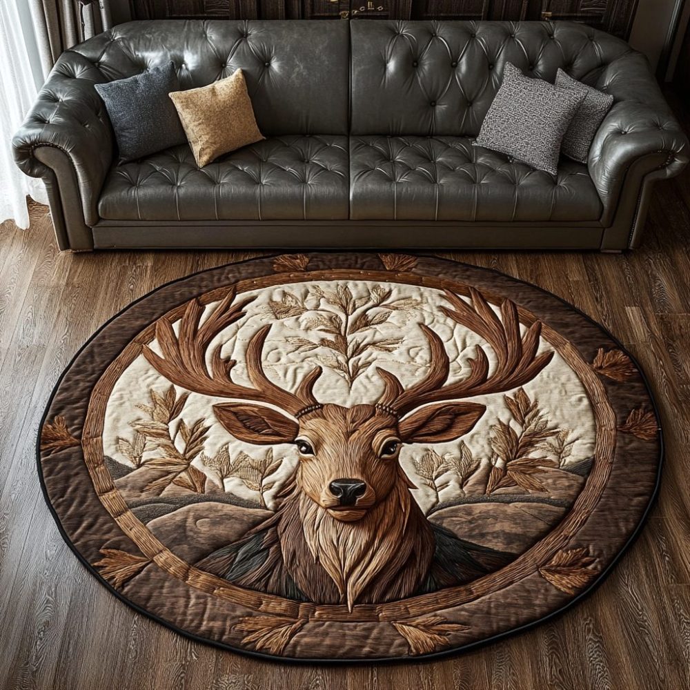 Golden Antlers Quilted Round Mat