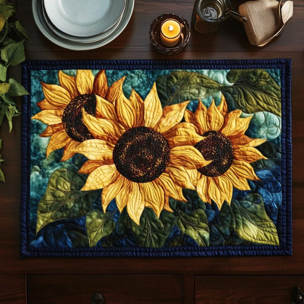 golden bloom placemat,floral quilted placemat,cotton table mat,insulated placemat,machine washable placemat,seasonal table decor,decorative placemat