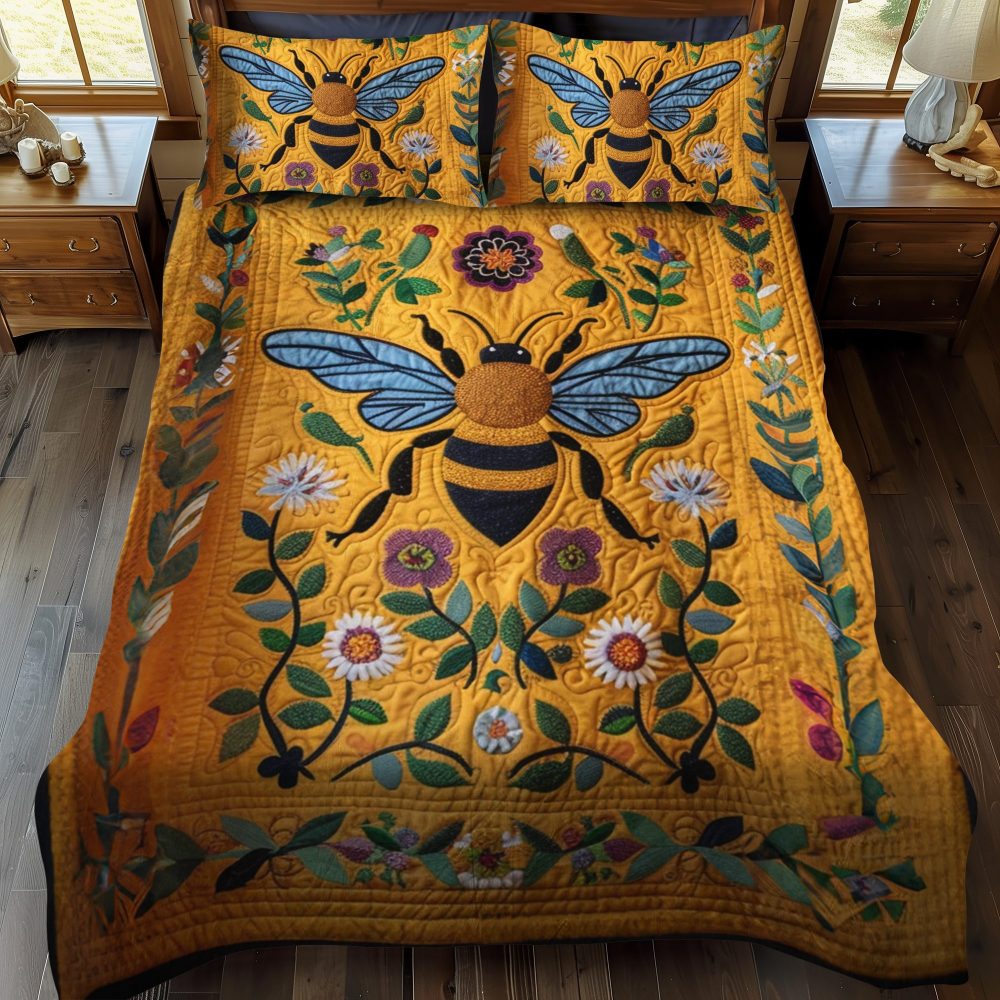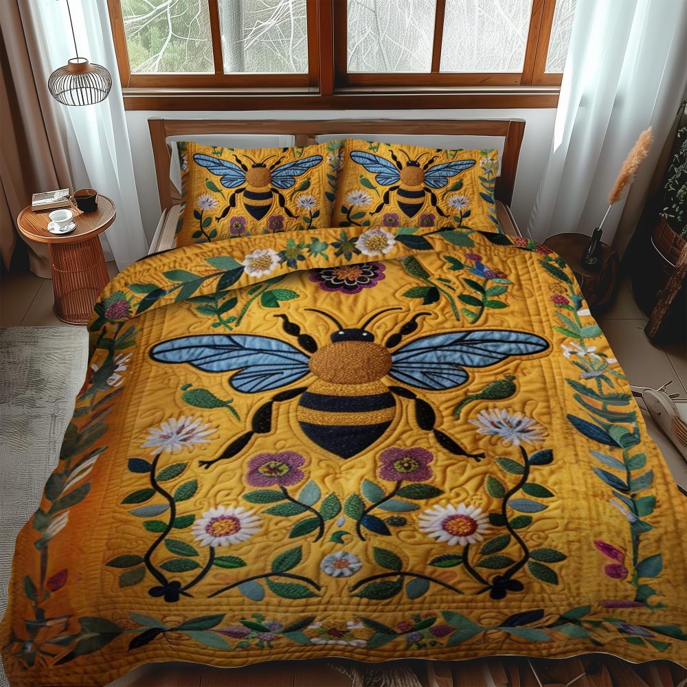Golden Bumblebee Art 3-Piece Quilted Bedding Set