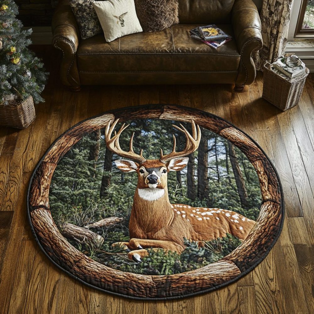 Golden Deer Quilted Round Mat