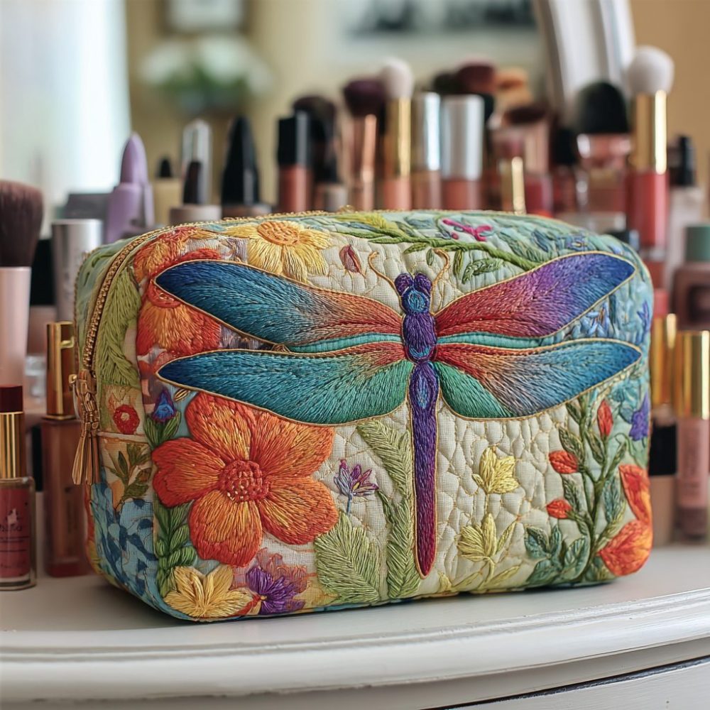 Golden Dragonfly Quilted Makeup Bag