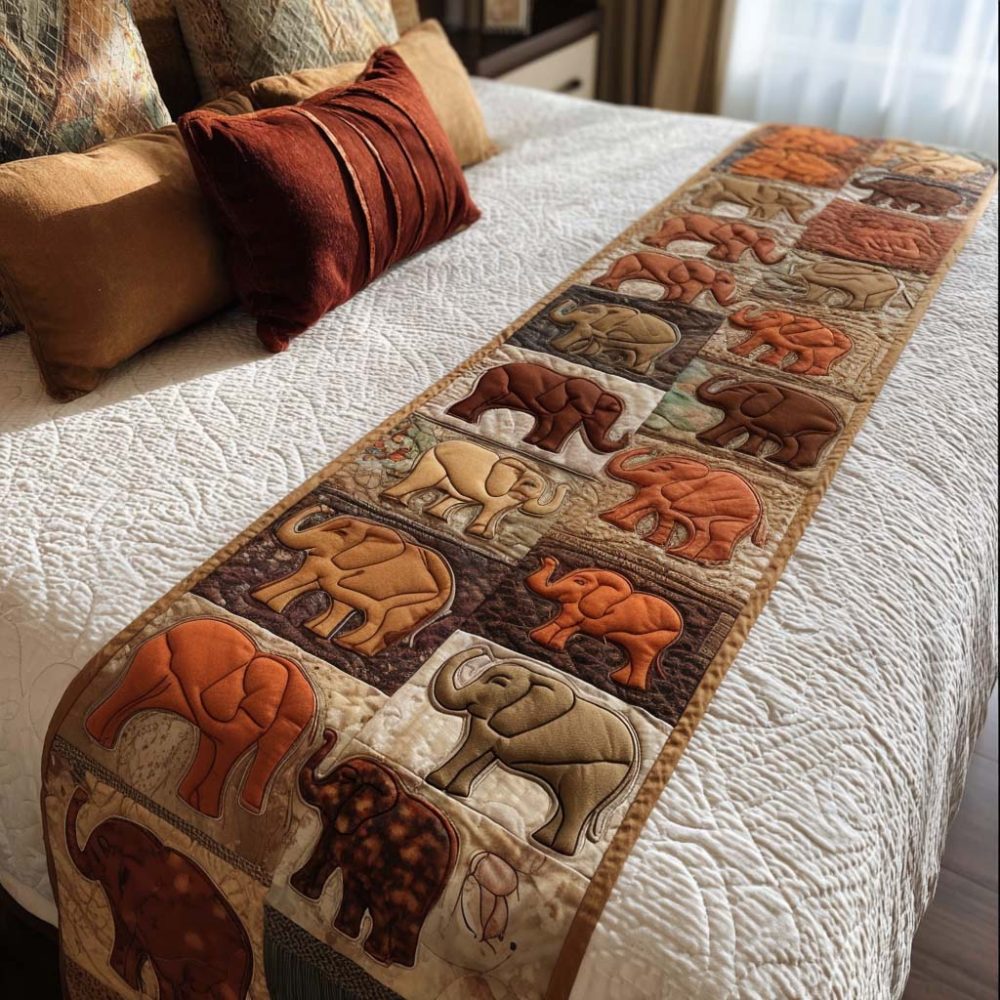 Golden Elephant Quilted Bed Runner — Luxe Gold-Tone Cotton Bed Scarf For Queen & King, Elegant Boho Accent With Intricate Motif, Reversible Design