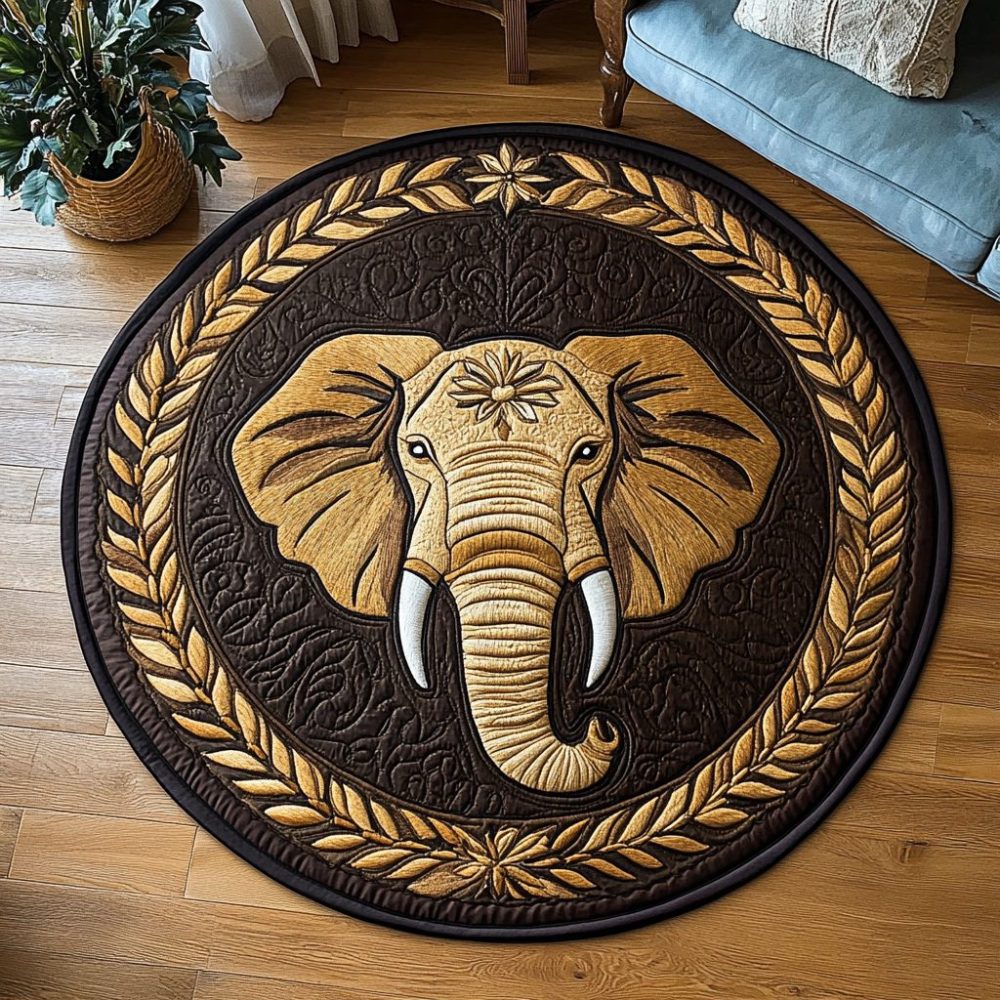 Golden Elephant Quilted Round Mat