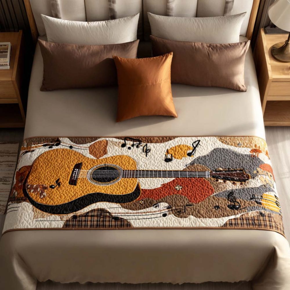 Golden Fret Quilted Bed Runner — Luxe Metallic Accent Bed Scarf With Warm Gold Tones, Reversible Cotton-Blend Runner For Elegant Spaces
