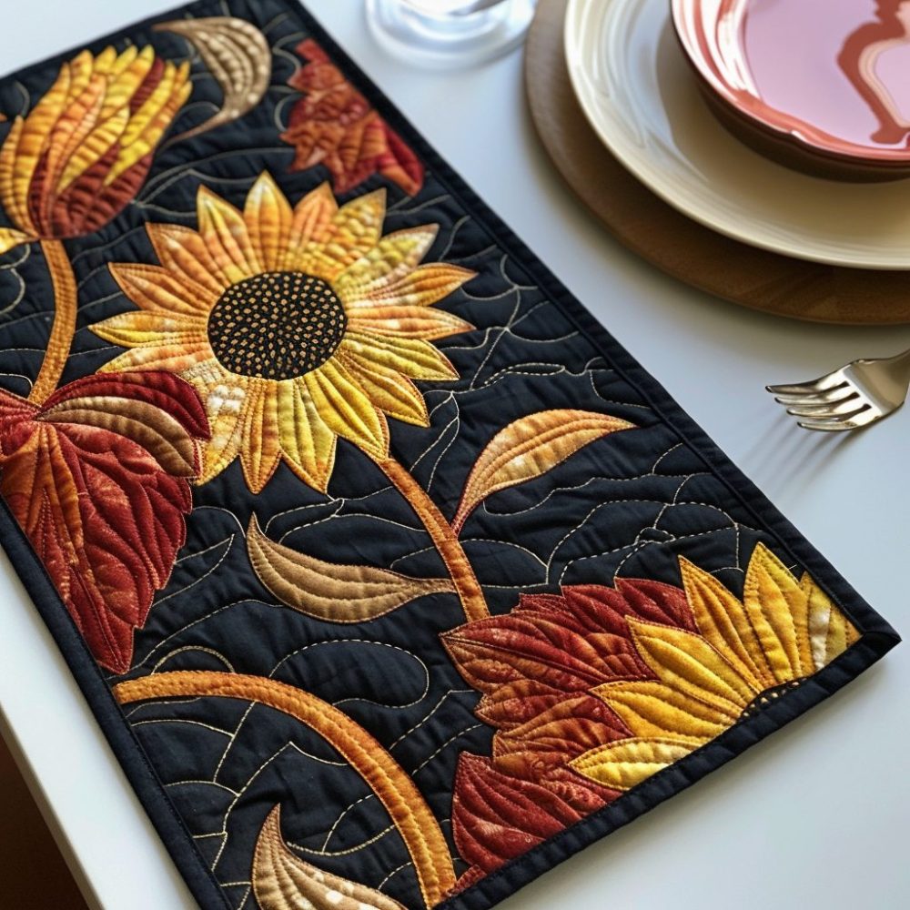 Warm up your dining area with the Golden Glow Sunflower quilted placemat, boasting bold sunflower imagery and warm golden tones. At 12×18 inches, it features a durable cotton-blend top and cushioned batting that guards tables from scratches and spills while delivering farmhouse charm. Stitched quilting enhances longevity and texture for everyday enjoyment. Care is convenient — machine wash cold, gentle cycle; tumble dry low or air dry. A stylish pick for seasonal decor and homey gift ideas.
