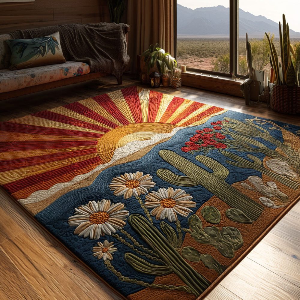 Golden Horizon Bloom Floral Area Rug — Elegant Bloom Motif In Warm Gold, Plush Yet Durable, Fade-Resistant, Ideal For Living Rooms