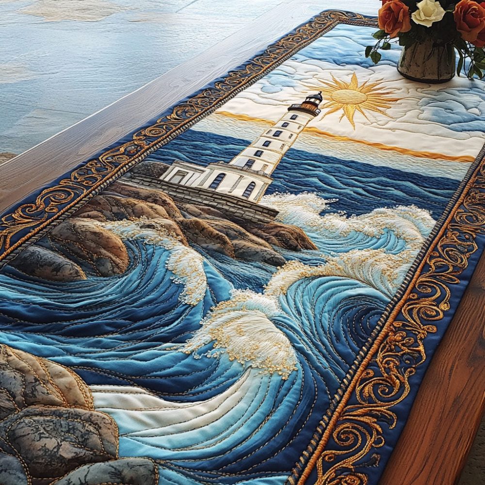 Golden Horizon Lighthouse Quilted Table Runner