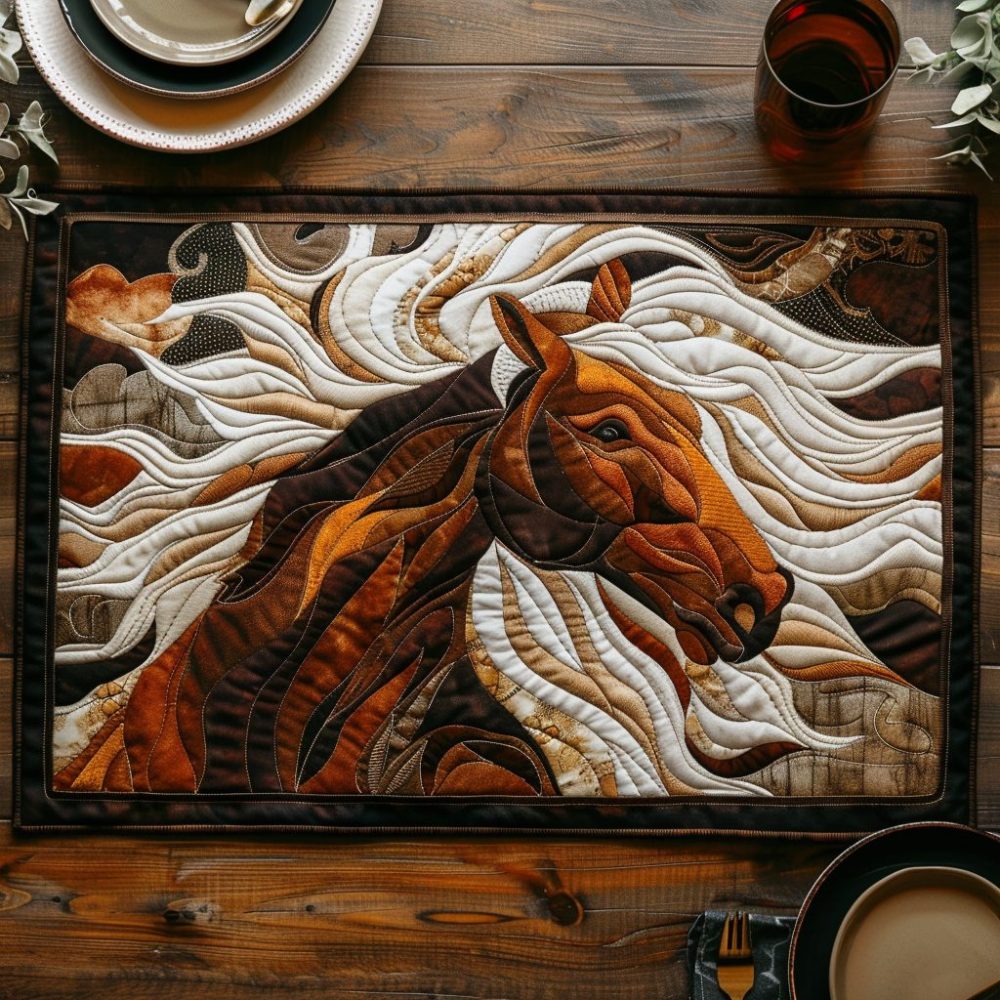 Golden Horse Elegant Quilted Table Placemat – Equestrian Metallic Accents, Premium Cotton-Blend, Heat & Scratch Resistant Dining Mat