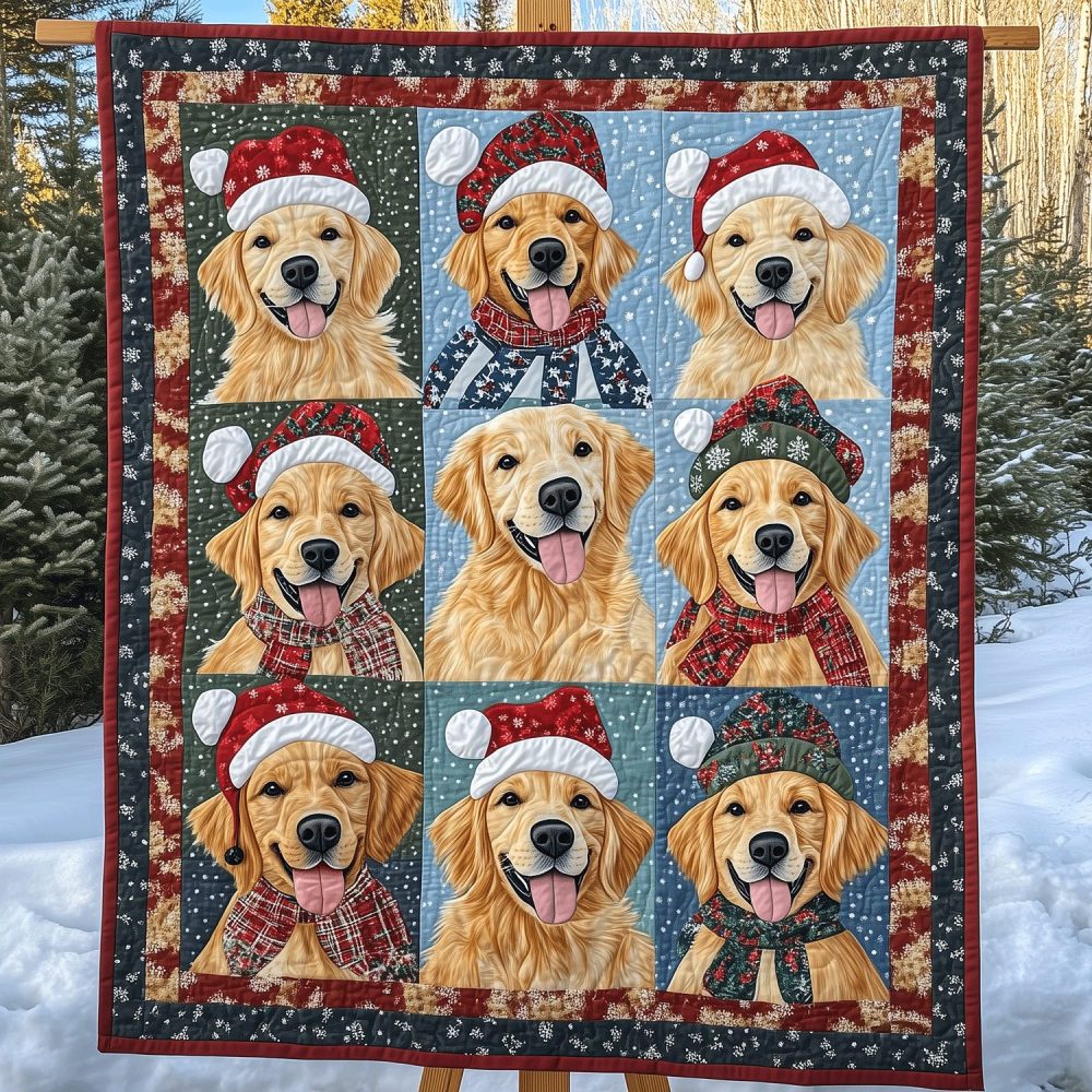Golden Retriever Cheer Art Quilt Hanging