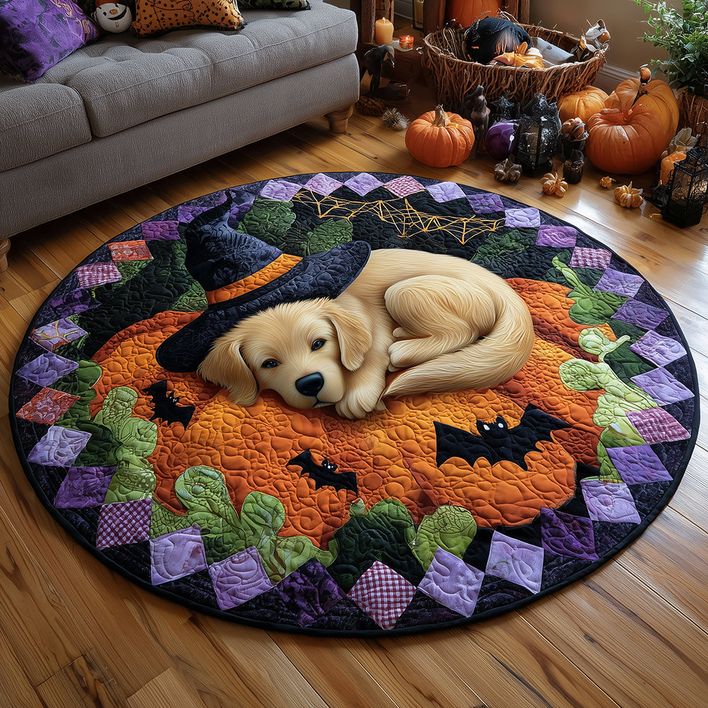 Golden Retriever Pumpkin Quilted Round Mat