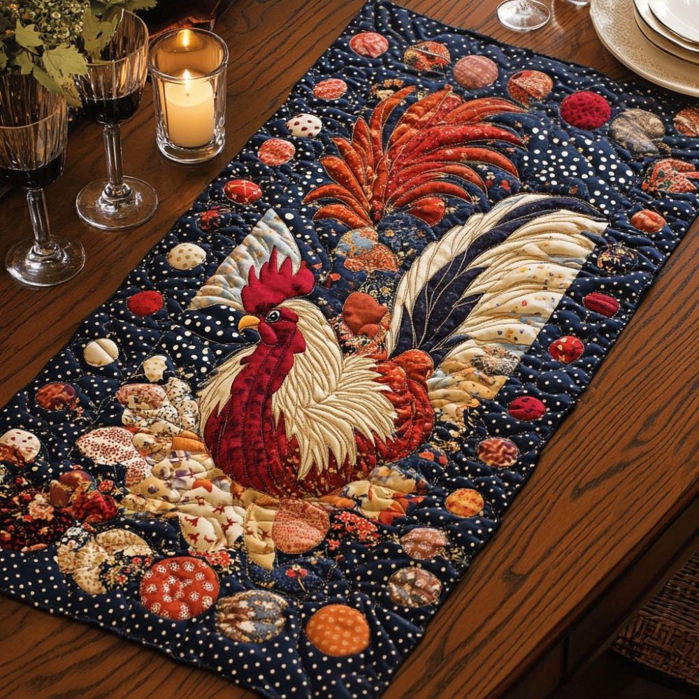 Golden Rooster Quilted Table Runner