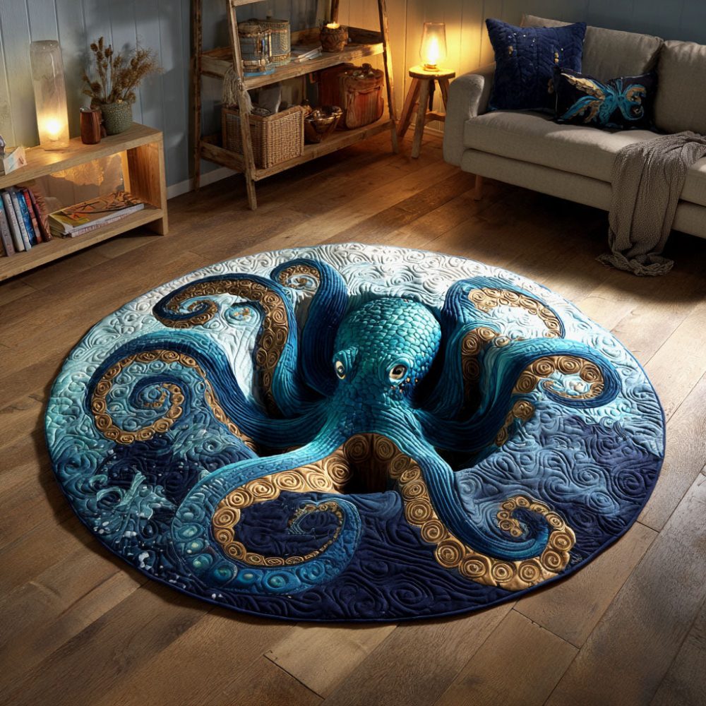 Golden Tentacles Quilted Round Mat